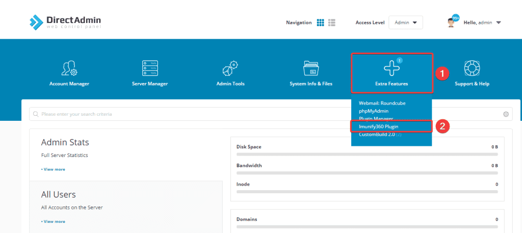 نصبکننده معمولاً پلاگین DirectAdmin را نصب میکند و Imunify360 در پنل DirectAdmin ظاهر میشود. برای بررسی: