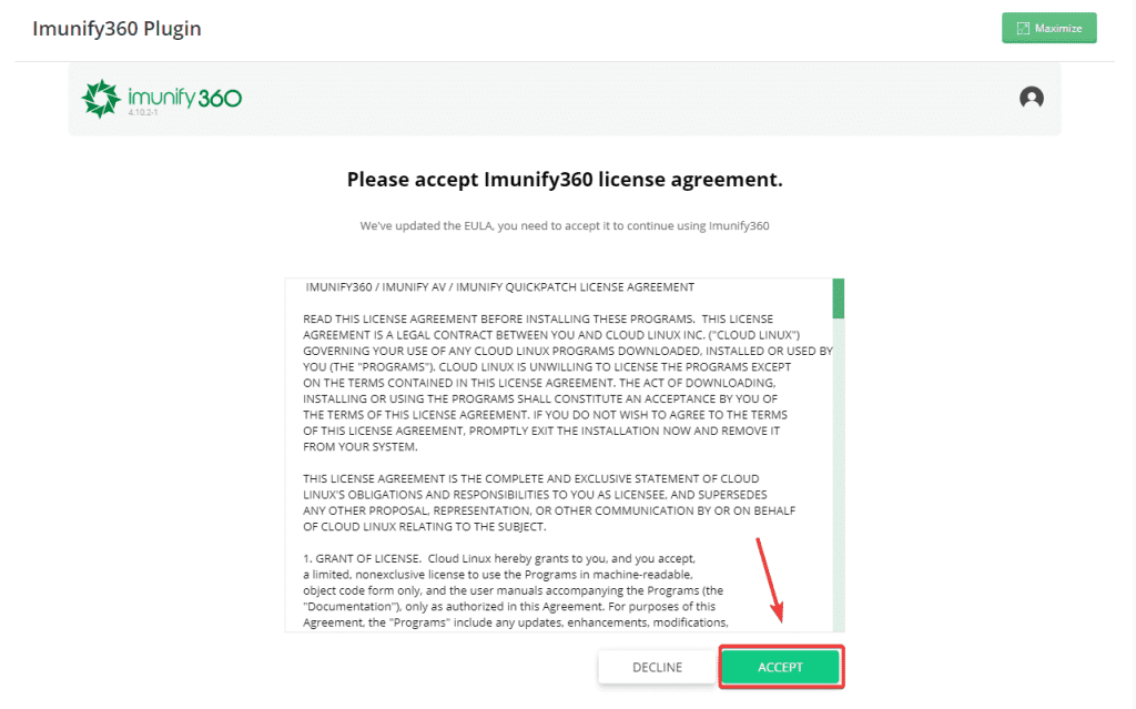 – Web UI: وارد پنل Imunify360 (معمولاً https://server:443 یا پورت مشخص) شوید.