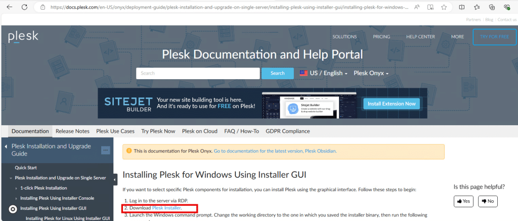 - مراجعه به https://docs.plesk.com → در منو دنبال «Plesk Installer» یا «Downloads» بگردید.