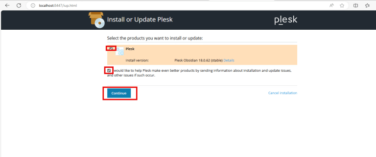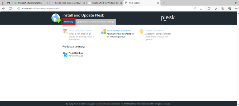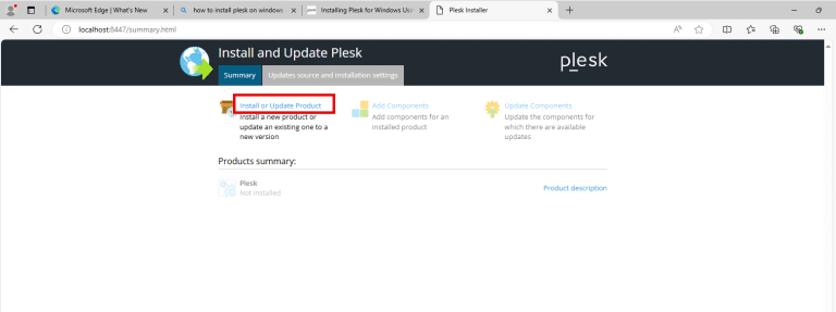 - در پنجرهٔ نصبکننده روی “Install and Update Plesk” کلیک کنید.