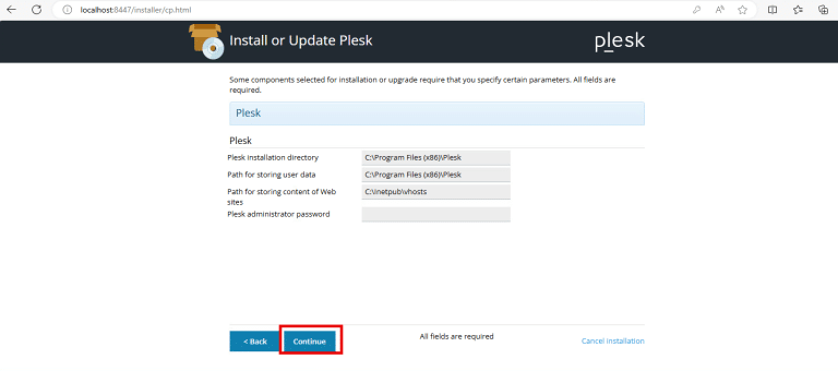 - دانلود فایل Plesk Installer برای ویندوز (Plesk-installer.exe یا مشابه).