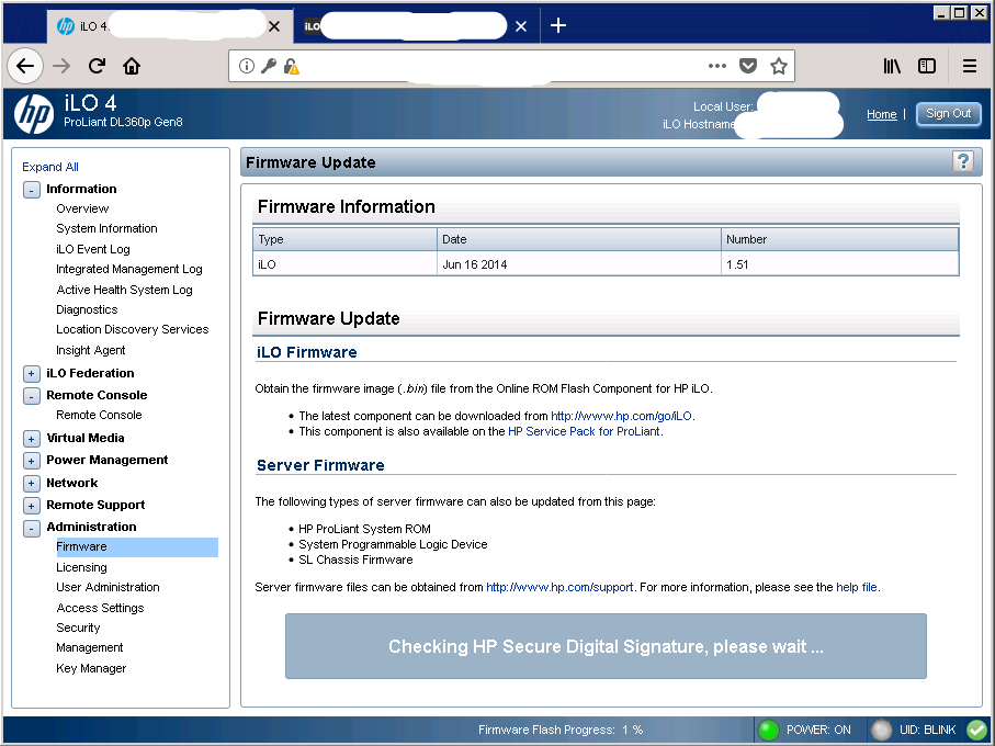 نسخه فریمور iLO را در بخش Information یا Firmware مشاهده کنید.