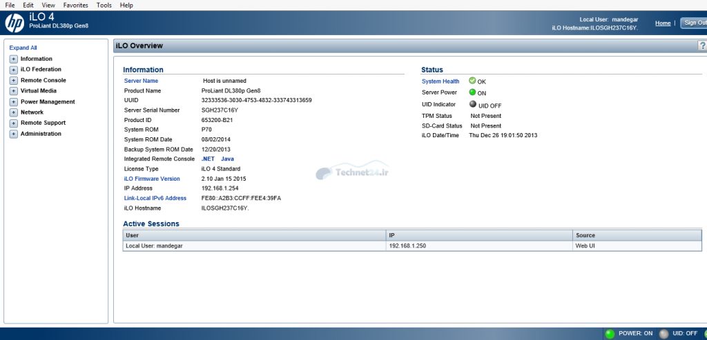 در مرورگر وب آدرس https://<iLO-IP> را باز کنید.