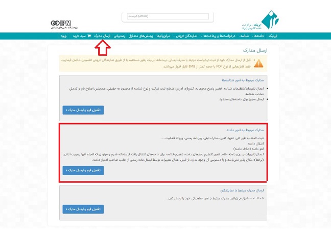 1. از منوی بالای سایت، گزینه «ارسال مدارک» را انتخاب کنید.
