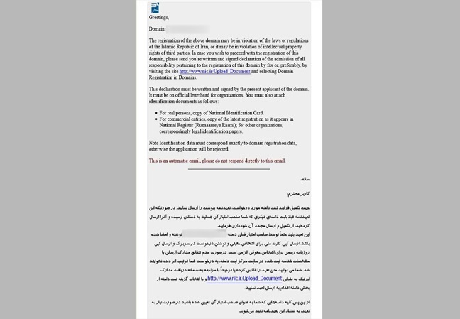از کجا بفهمیم دامنه ir نیاز به ارسال مدارک دارد؟
