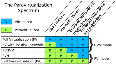 – Xen همچنین حالت HVM را دارد که full virtualization با شتاب سختافزاری است؛ اما برای کارایی، اغلب از PV drivers در HVM استفاده میشود (PV-on-HVM).