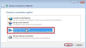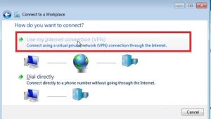 – گزینه Connect to a workplace را انتخاب کنید و سپس Use my Internet connection (VPN).