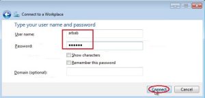 – نام کاربری و رمز را وارد و Connect را بزنید. اتصال معمولاً در حدود یک دقیقه برقرار می‌شود و پیام You are connected نمایش داده می‌شود.