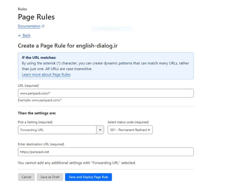 در پلن رایگان فقط ۳ Page Rule قابل ایجاد است.