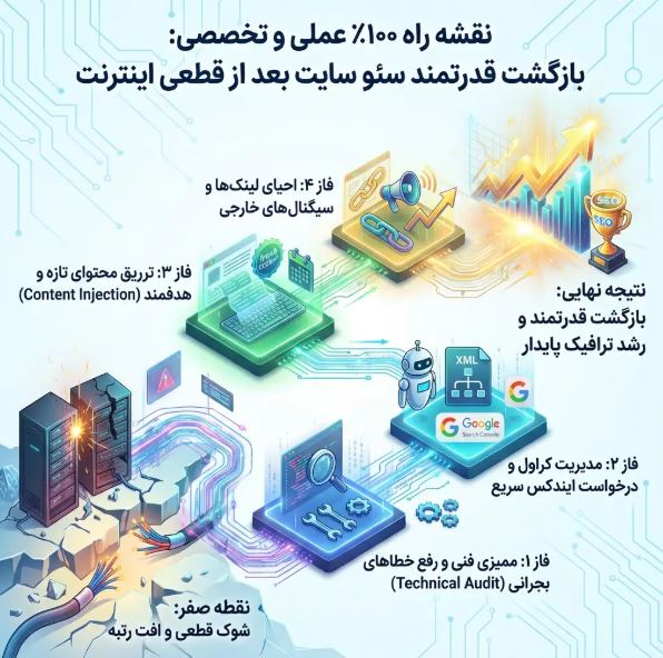 تولید محتوای همیشه سبز (Evergreen Content) و برنامهریزی دقیق انتشار آن، کلید موفقیت سایت در زمان قطعی اینترنت است. نکات مهم شامل: