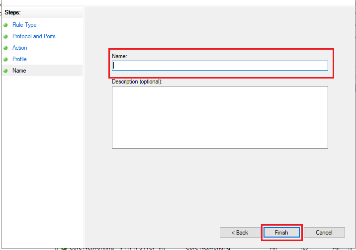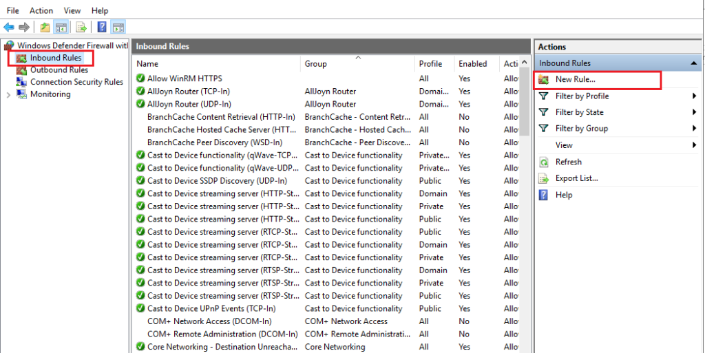 Windows Defender Firewall with Advanced Security → Inbound Rules → New Rule.