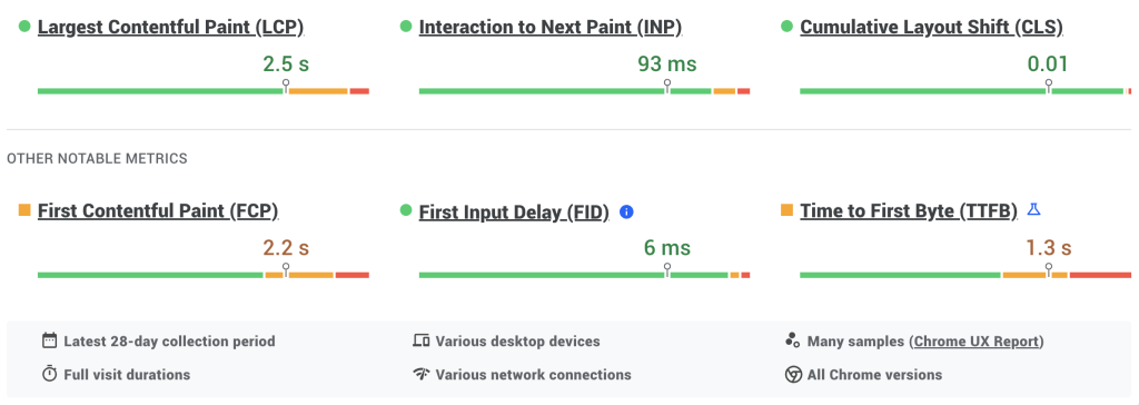 – Core Web Vitals: همهٔ شاخصها در دستهٔ “Good” قرار گرفتند.