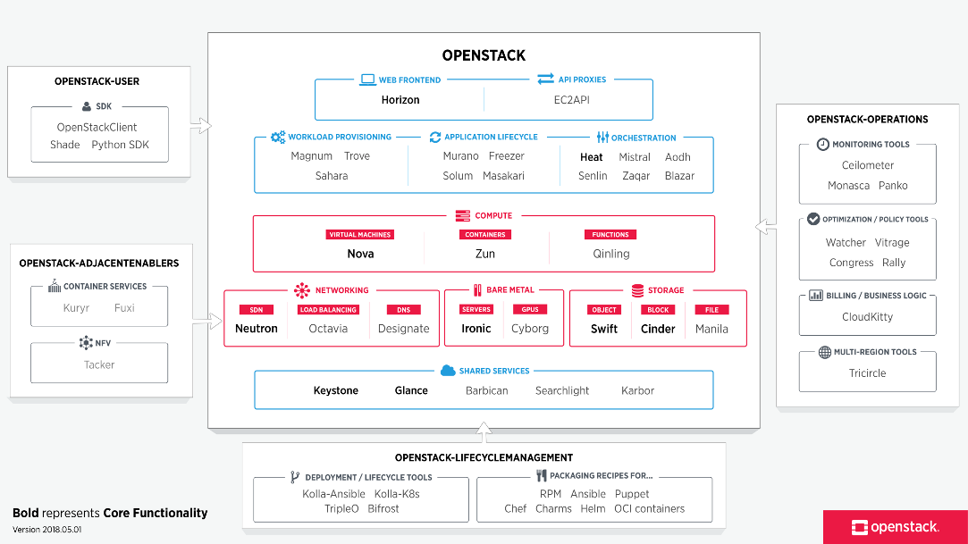 – Container-as-a-Service: اجرای خوشههای Kubernetes از طریق Magnum و ادغام شبکه با Kuryr.
