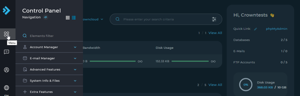 روش سریع از صفحه کاربر (پس از لاگین به DirectAdmin)
