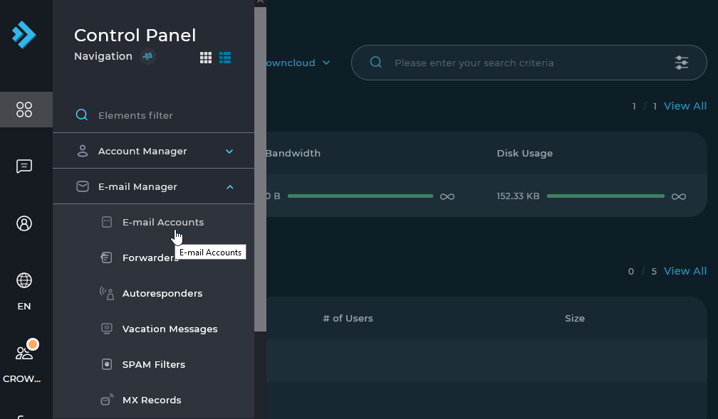 – توانایی ایجاد حساب ایمیل در کنترل پنل