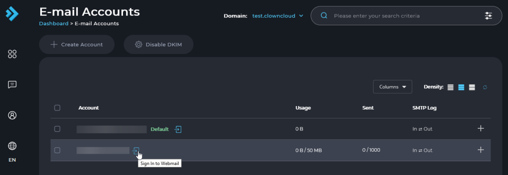 – مشاهده لیست حساب‌ها، دسترسی به Webmail از طریق دکمه “Check Email” یا آدرس‌های پیش‌فرض:
