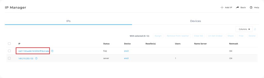 حالا دوباره در نمای «IP Manager» هستید. روی آدرس IPv6 تازه اضافهشده کلیک کنید.