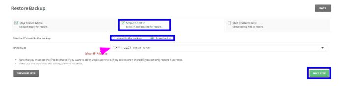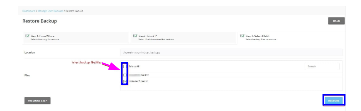 – اگر فایل پشتیبان روی سرور است، میتوانید آن را از فهرست انتخاب کنید یا فایل را در مسیر /home/admin/admin_backups/ قرار دهید تا DirectAdmin آن را تشخیص دهد.