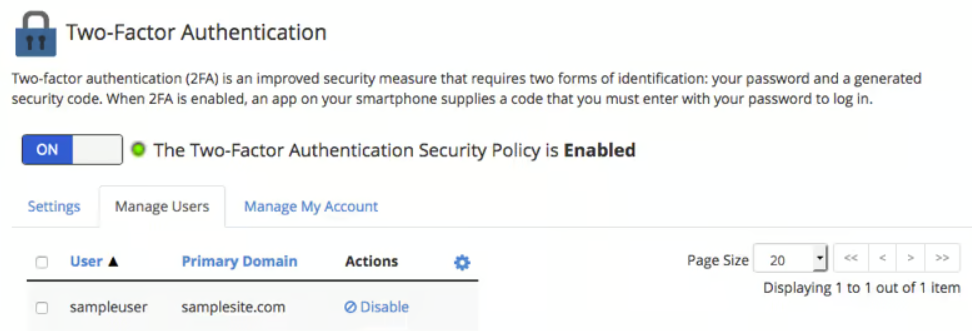 > نکته: اگر سرور شما دارای چندین کاربر است، پیشنهاد میشود 2FA را برای همه کاربران cPanel فعال کنید.