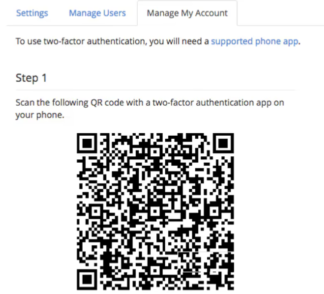 2. روی Manage کلیک کنید و 2FA را فعال کنید.