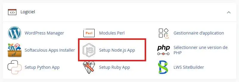 به رابط مدیریت cPanel خود وارد شوید و روی آیکون “Setup Node.js App” کلیک کنید.