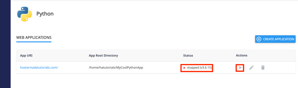 – Start/Stop: وضعیت اپ در ستون Status نمایش داده میشود؛ با کلیک روی دکمه Play میتوانید اپ را اجرا یا متوقف کنید.