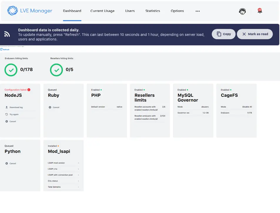 -بهروزرسانی منظم: CloudLinux و LVE Manager خود را بهطور منظم بهروزرسانی کنید تا از آخرین ویژگیها و بهبودهای امنیتی بهرهمند شوید.
