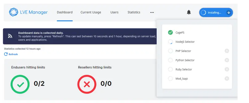 LVE (Lightweight Virtual Environment) یکی از ویژگیهای CloudLinux است که به شما اجازه میدهد منابع کاربران را محدود کنید. برای فعالسازی LVE Manager: