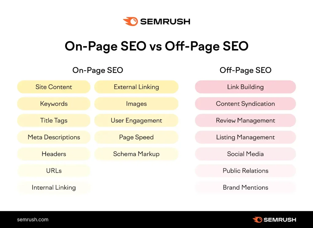 در سئو، SEMrush برای تحقیق کلمات کلیدی، تحلیل رقبا، بررسی وضعیت صفحات و کشف مشکلات فنی سایت کاربرد دارد. با Keyword Magic میتوان فهرستهای کلمات کلیدی مرتبط و پرسشها را پیدا کرد و از دادههایی مانند حجم جستوجو و سختی کلمه برای اولویتبندی استفاده کرد. Site Audit خطاهای فنی مثل خطاهای 4xx/5xx، سرعت صفحات، تگهای تکراری و مشکلات متادیتا را شناسایی میکند. Position Tracking رتبهٔ فعلی و تغییرات کلمات کلیدی را مانیتور میکند و امکان گزارش بهصورت محلی یا بر اساس دستگاه را میدهد. تیمهای محتوا میتوانند از SEO Content Template برای تولید محتوای بهینه استفاده کنند که بر اساس رقبای برتر پیشنهادات ساختار و کلیدواژگان میدهد.